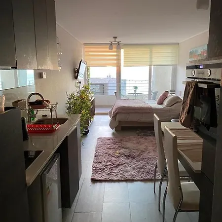 Depto. Estudio Con Vista Al Mar lägenhet är belägen i Vina del Mars Reñaca distrikt, ca 0,5 km från Vina del Mar flygplatsen. Boendet placeras 3,5 km från Playa Las Salinas, och består av 1 sovrum, 1 badrum och ett kök.